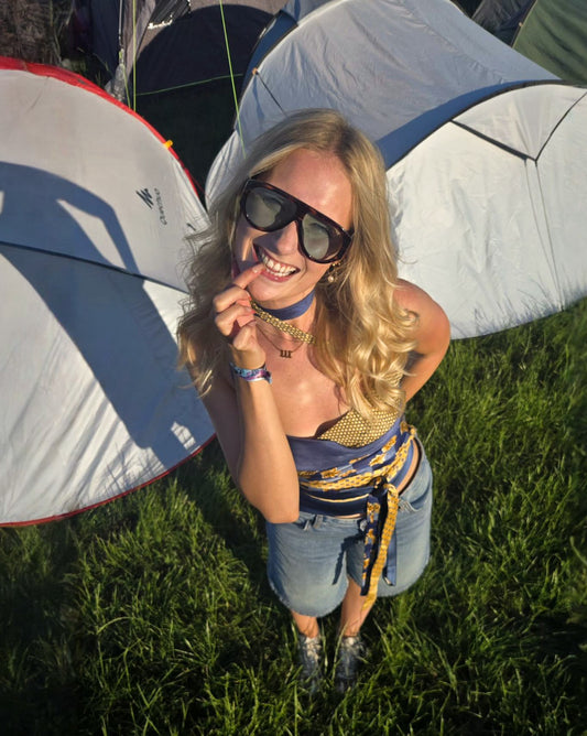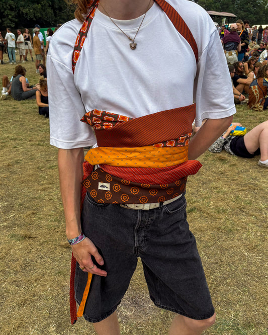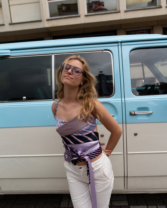 Seventeen one-of-a-kind tie tops made from vintage ties – bold, silky, and endlessly versatile. Wear them your way: knotted, wrapped, or twisted. From beach clubs to rooftops and everything in between – this is your suit for the summer.