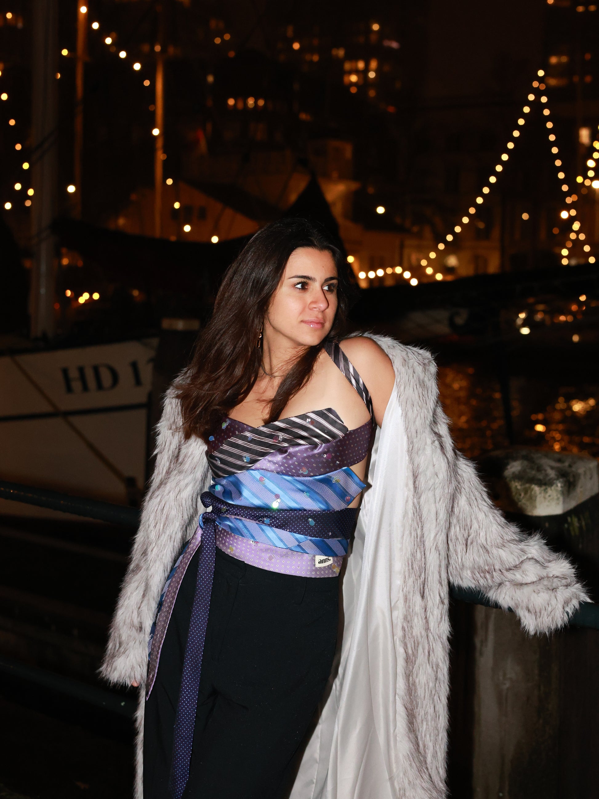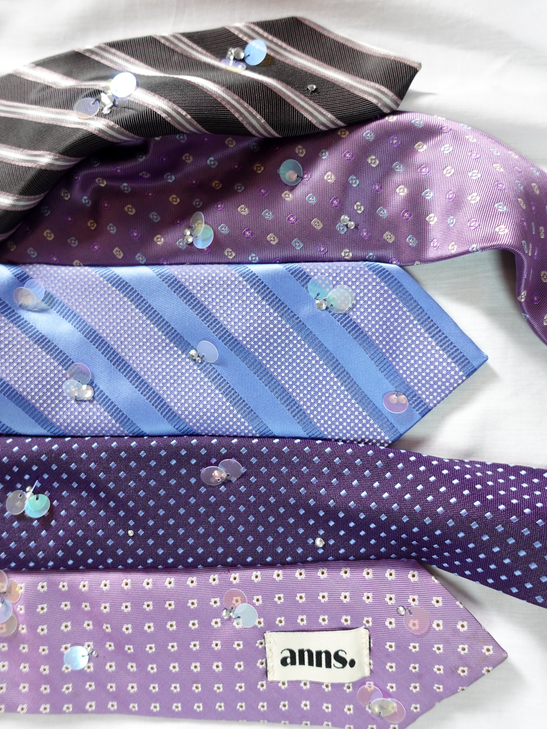 This tie top is made out of vintage ties. Slight discoloration or imperfections may be present due to the previous life and love each individual tie has had. Rest assured, all ties are thoroughly cleaned and will arrive at your doorstep fresh and ready to wear. To prevent damage to the ties and their lining, this top is only washable by hand. In case of wrinkling, this top can be ironed on the lowest setting.